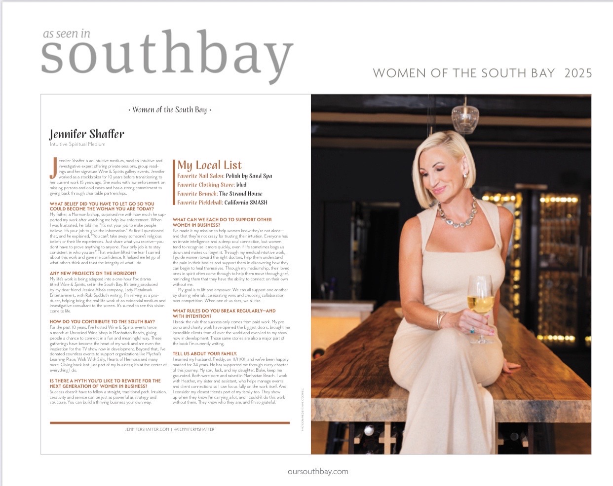 Jennifer Shaffer is an Internationally Recognized Intuitive Spiritual Medium, Investigative Case Expert, Medical Intuitive, and Wine and Spirit Platform Reading Gallery Event Enthusiast đ„